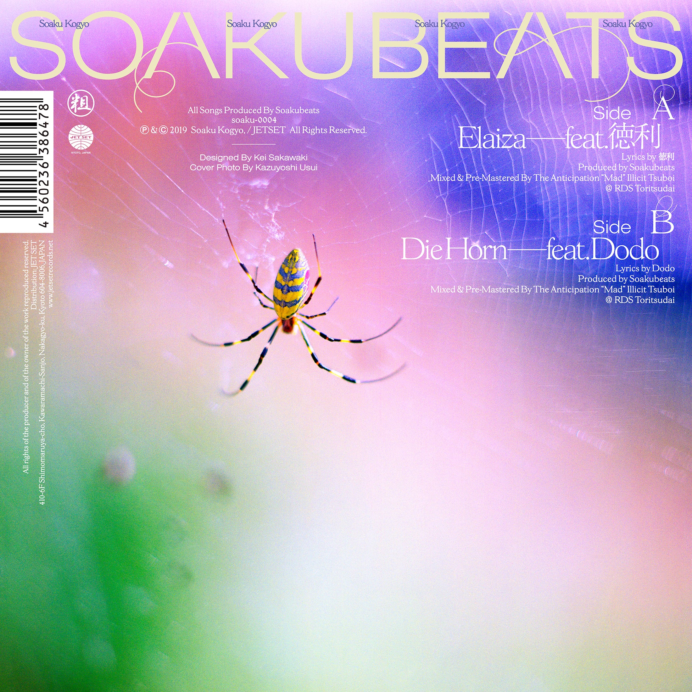 まずA面は、クリアなシンセ・サウンドとおセンチなメロディが込み上げるシンセ・ファンク~フューチャーR&B・ナンバー"Elaiza feat.徳利"。博多のナポレオンダイナマイトこと徳利がある日、原宿で出会ったある某女性芸能人についての思いをラップしており、彼の類まれなキャラクターを活かしたクセの強すぎるMVも評判となった楽曲です。soakubeats自身も「自分の好奇心に忠実に作れた自信作」と語っています。